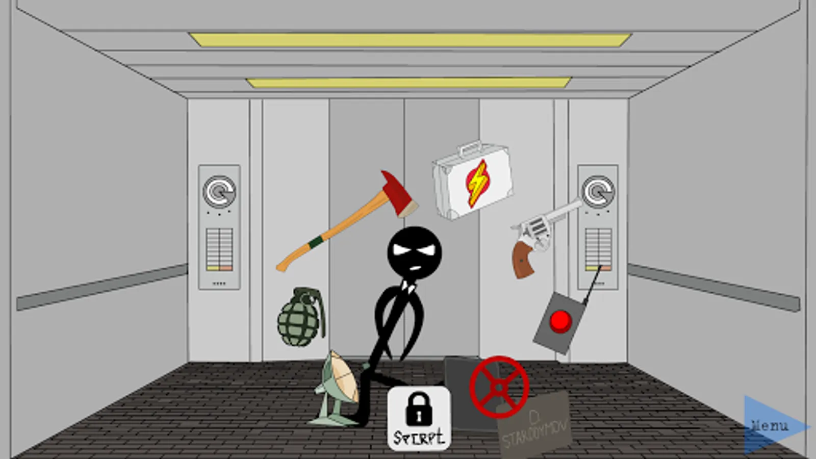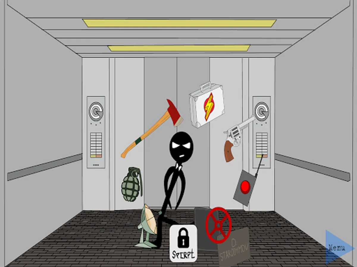 You are stuck in the elevator with your diamond. Your task is to open the suitcase and use the right items to escape from the elevator. Objects are different, not including the diamond, there are those that will lead you to death, but there are those that will save your life. Be careful and turn on the logic to secure the diamond as well. You are waiting for a variety of enemies and characters. Funny animation and the plot will make you happy. Find all the successful endings and unsuccessful ones too. Download the first part of this wonderful game. Write in the comments if you want to see the new part.The game is free.