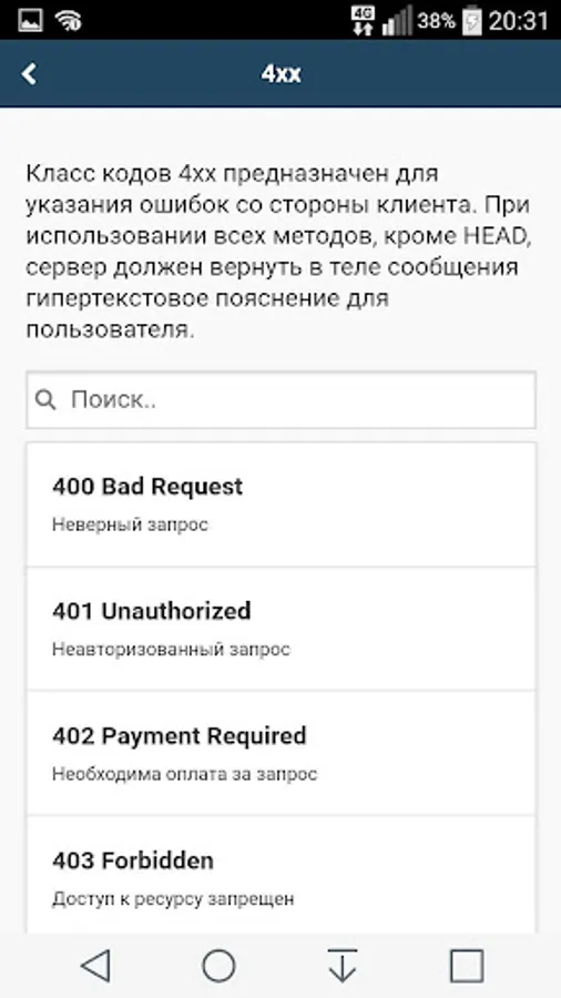 The list and decoding of HTTP status codes. At the moment, the app contains 5 classes: