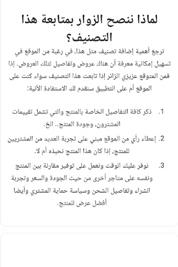 Therefore, we offer you the "Products and Offers" application, which provides you with many articles about many products, stating their specifications and from which store you buy them, and sometimes a comparison between the product and the same on other stores. This saves you time and effort in searching.