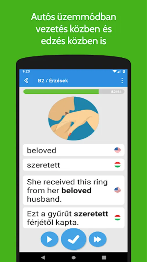 The program also uses word cards for learning and questioning English, but it does so specifically. English-Hungarian word pairs and example sentences also include word cards, which the program reads aloud in the native language.