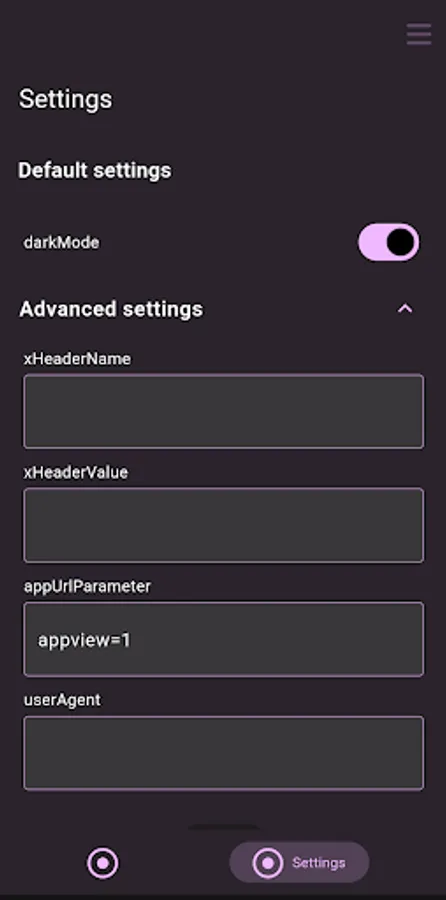 You can enter any URL (link) in Settings. The application will then always start with this page on the main screen.