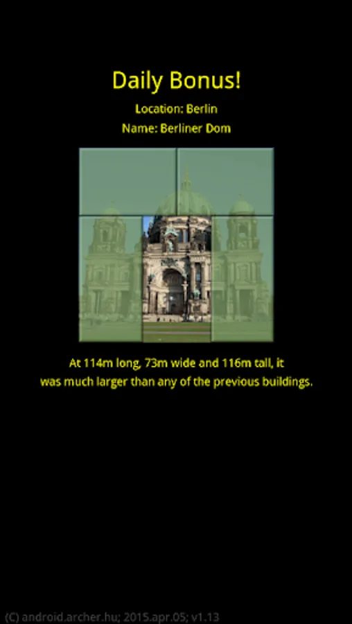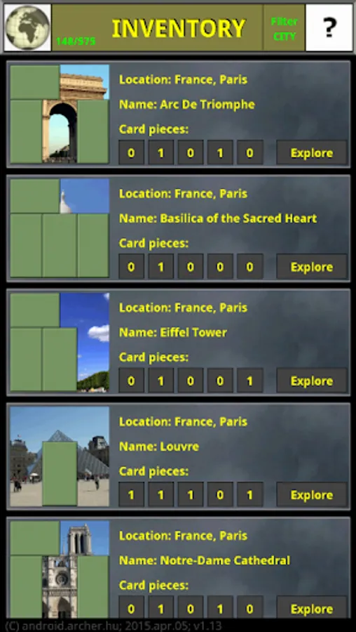 This application is about exploration of beautiful cities of the World. Collecting building card pieces you will get a lot of information about famous sightseeing of different cities all over the world. This virtual journey helps you to know more about interesting architectural masterpieces.