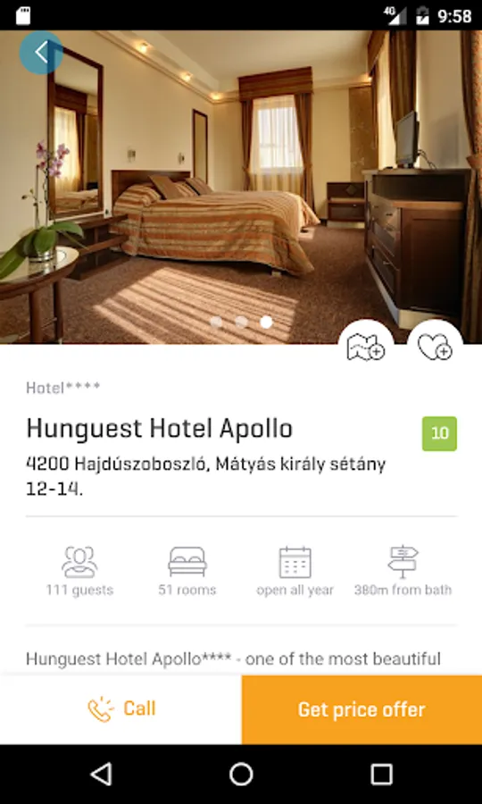 It lets you browse on your cell phone the sights, accommodations, restaurants, and shops of the city in a simple, easy-to-use format, grouped thematically. We give you some hints on how to spend your spare time, and you will also be informed about our events. The local yellow pages of the Hajdúszoboszló APP informs you about doctors, repair services, ATMs, and other useful pieces of information that may be important for a care-free vacation.
