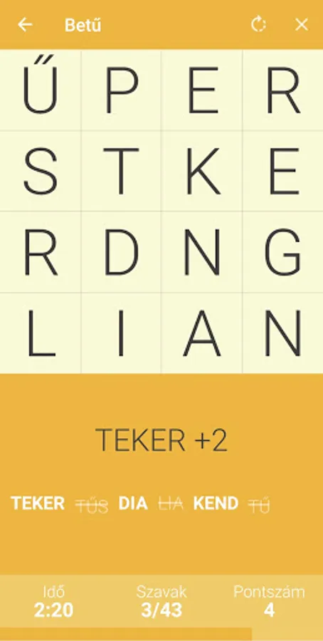 There is a grid with letters, from which you have to unload as many meaningful Hungarian words as possible. Sound simple? It may not work!