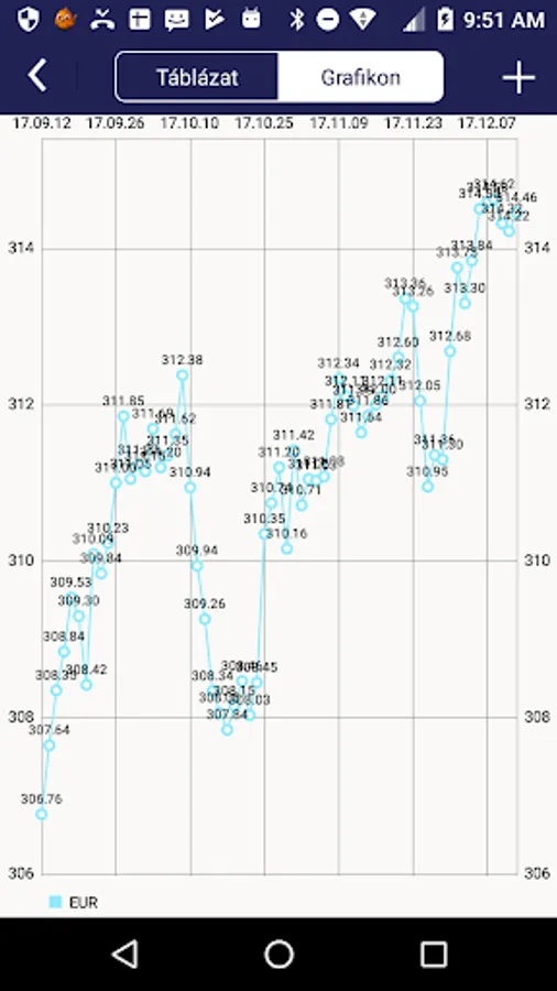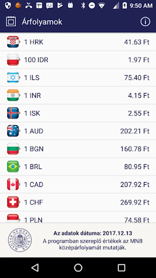 The application can be viewed using the official exchange rates published by the National Bank of Hungary (NBH). It is possible too subscribed by the MNB-currency exchange rates of currencies is a query that the Bank had subscribed, but no longer for sale. The polling interval can be determined freely, the retrieved data can be displayed graphically and in tabular form. This application requires internet connection that is available for a fee in some cases.