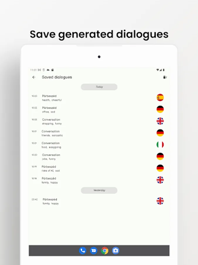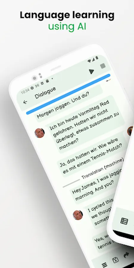 It has been proven that reading or listening to real-life dialogues can greatly help language learning and everyday use. This is what Duenna AI does, generating dialogues about almost anything in a fun and varied way.