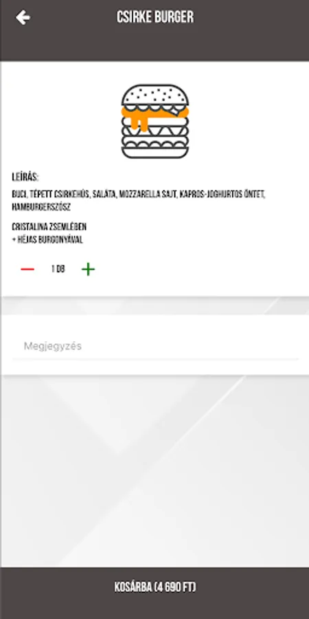 Bon Appetit is located in Győr. Our offer includes hamburgers, gyros, puddles, appetizers, soups, fresh fries, ready meals, side dishes, hearty dishes, pasta, salad, pickles, dressings, pancakes, desserts, soft drinks and beer. If you like something on the menu, order it online with a few clicks!