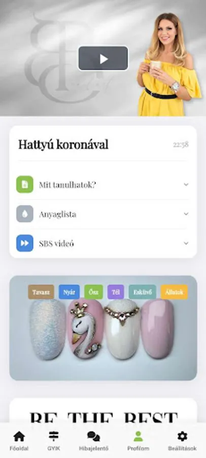 Welcome to the BeTheBest Nail Academy, where with the help of Olympic champion Marton Bettina's decorative and international educational video demonstrations, you too can become a master of artificial nail decoration.