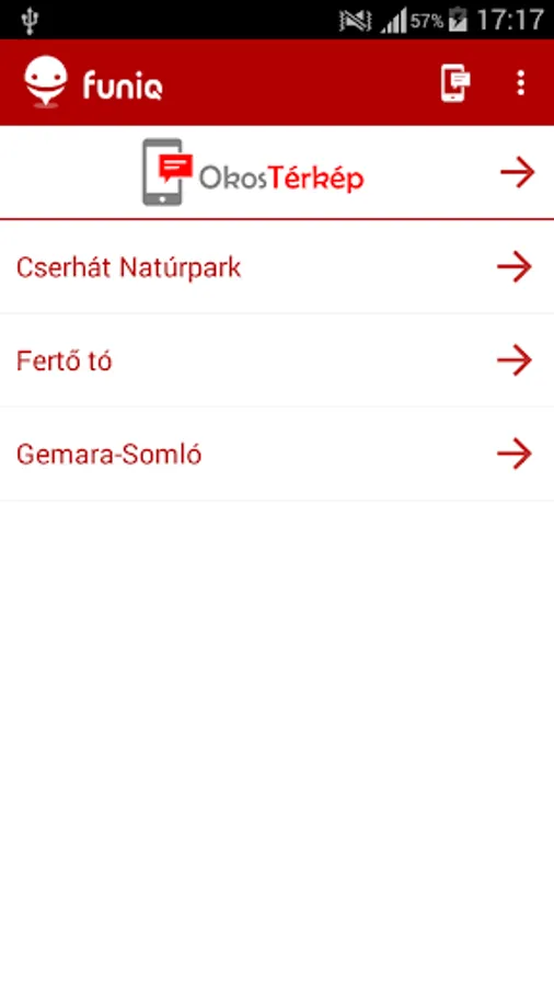 Through the Smart Map funiQ mobile app, a region settlements, sights and related cycling and hiking bids presented, continuously updated content.