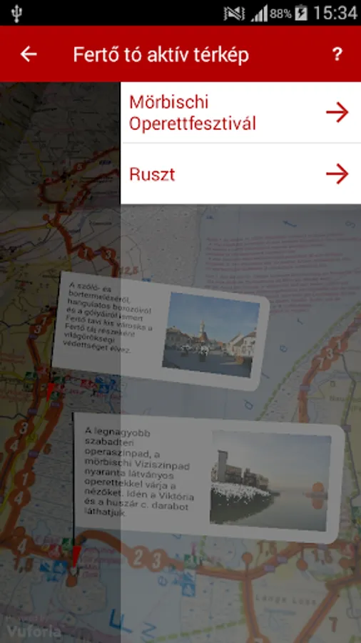 The application augmented reality (AR) technology feature shows you all of this even more spectacularly, in a playful way. A mobile phone or tablet's camera should be directed at the map, then certain points of application of the information displayed on the screen so that projected up to them on the map, sensing the specific geographic point. From there you are just one click and access the attractions for this point.