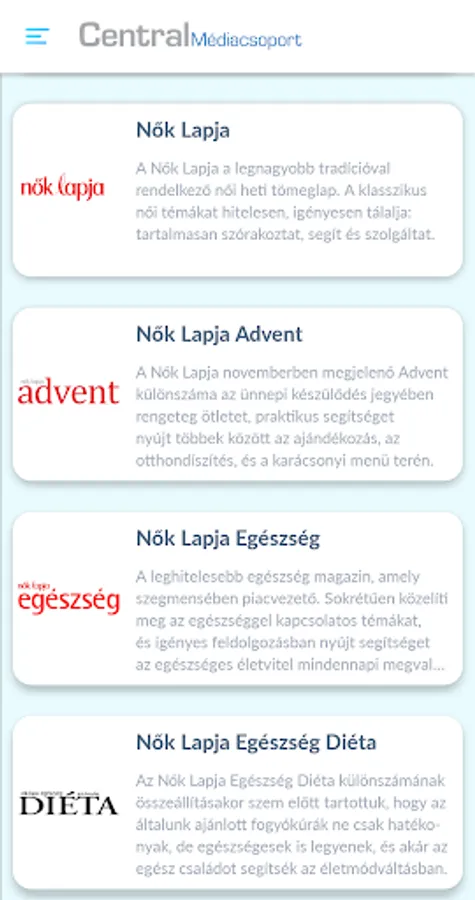 As a market-leading magazine publisher in Hungary, we have reached 2 300 000 people with 50 printed magazines and special numbers. The magazine portfolio we represent is one of Hungary's best-known brands with the longest history, entertainment, educational and lifestyle magazines, weekly and monthly magazines such as Women, Story, Best, Surprise, Marie Claire, ELLE, National Geographic. In addition to selling magazine and online advertising interfaces, the Central Media Group also deals with communication opportunities such as organizing events, brand extensions, and commercial collaborations offering integrated solutions.