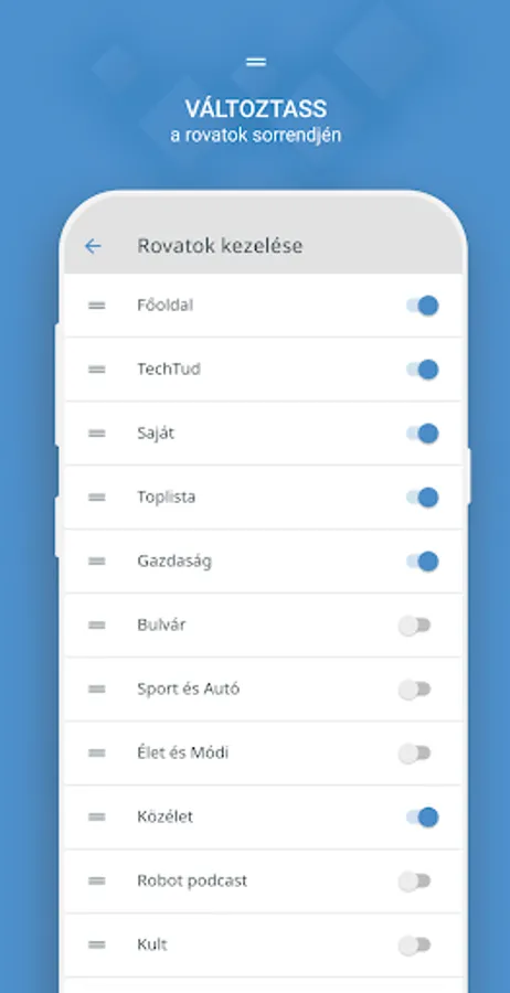 The latest news from all major and minor news sources can be found in our application, such as 24.hu, Index, Blikk, HVG, NLC, and more... :)
