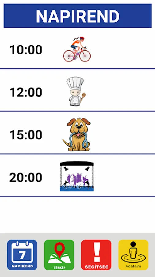 DAILY PROGRAM - the current 3-4 hours of work, supported by icons
