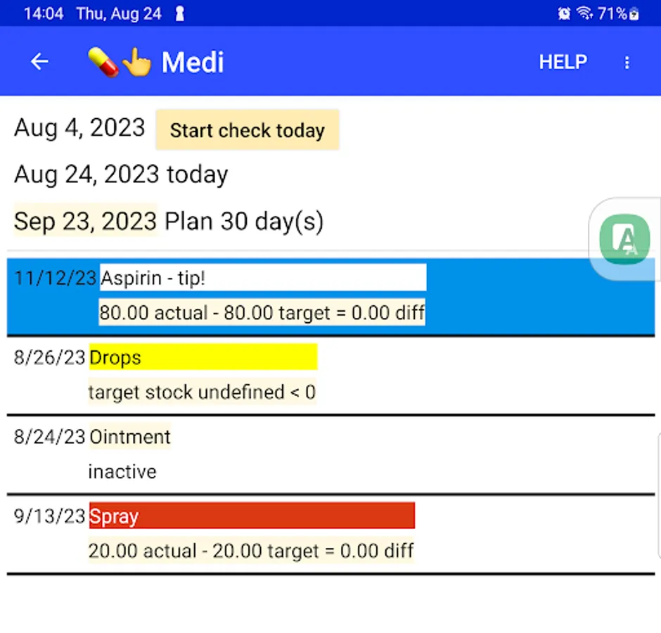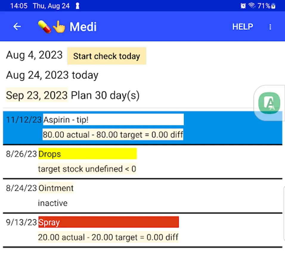 The app calculates the target consumption of the medication according to the recipe and can thus calculate the target stock of supplies. The planned stock is compared with the actual stock. This results in a precise monitoring of the medication intake.