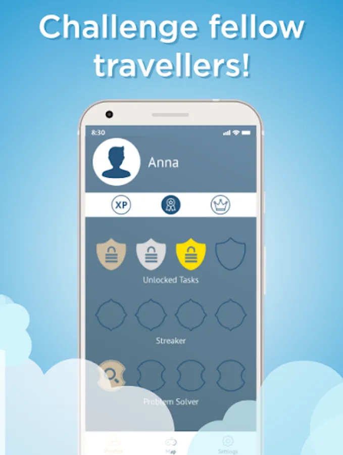 During the travel game, you’ll encounter two types of reward points: the XP, which is the Experience Point, and CP, the Calm Point. You can get more of these by completing the tasks. The only difference between them is that the XP shows your effort and puts you to the top of the Leaderboard, while you’ll need your calmness, namely your CPs to complete new lessons. Just like your calmness, your CPs also have an end, but you can get more by solving tasks, or you can wait a few minutes to load some more.