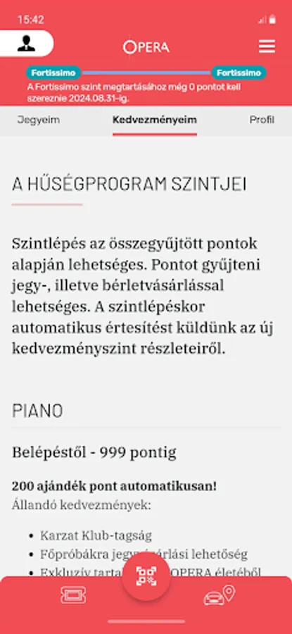 Red dot! our loyalty program is beneficial both for our seasoned opera-goers and for our new viewers who are just getting to know the genre. By collecting points with their purchases, they can reach higher and higher levels and gain access to exclusive discounts and content, whether it is the opportunity to visit the main rehearsal or insider behind-the-scenes videos. Our enthusiastic point collectors can also be the first to find out about ticket and pass purchases, unique, personalized promotions, and can also participate in games and raffles.