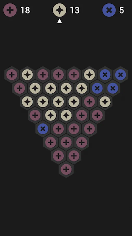 Your goal is to dominate the hexagonal board. In your turn you either multiply or jump with one of your tokens and convert all the opponent's neighbouring tokens. The game ends when no more empty hexes left on the board.