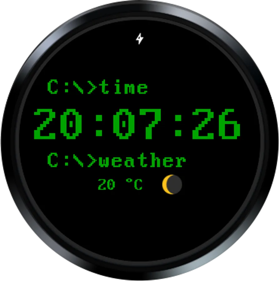 - Weather (Temperature and weather condition icon (also moon phase on clear nights)