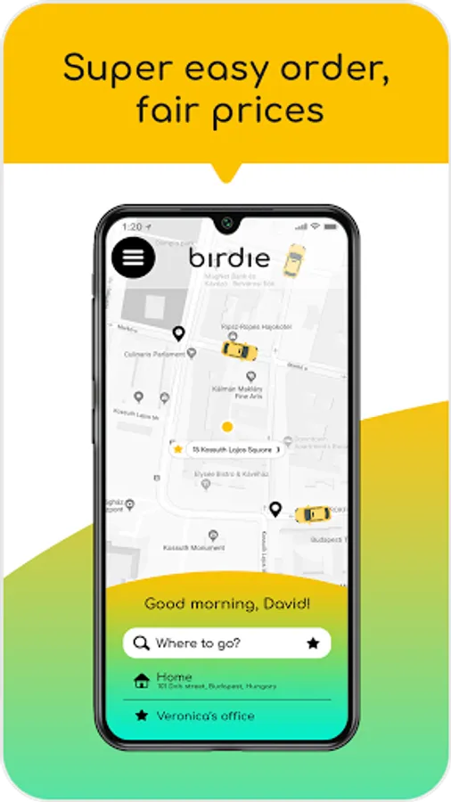 6x6 Taxi has grown wings! Birdie is a brand-new and innovative taxi app with the aim to make city transportation easier and more comfortable. We watched and learned, so we could perfect passenger transport and give our customers what they really want: simple and quick booking with predictable fares, direct communication with the drivers, shareable fares, and personalised rides.
