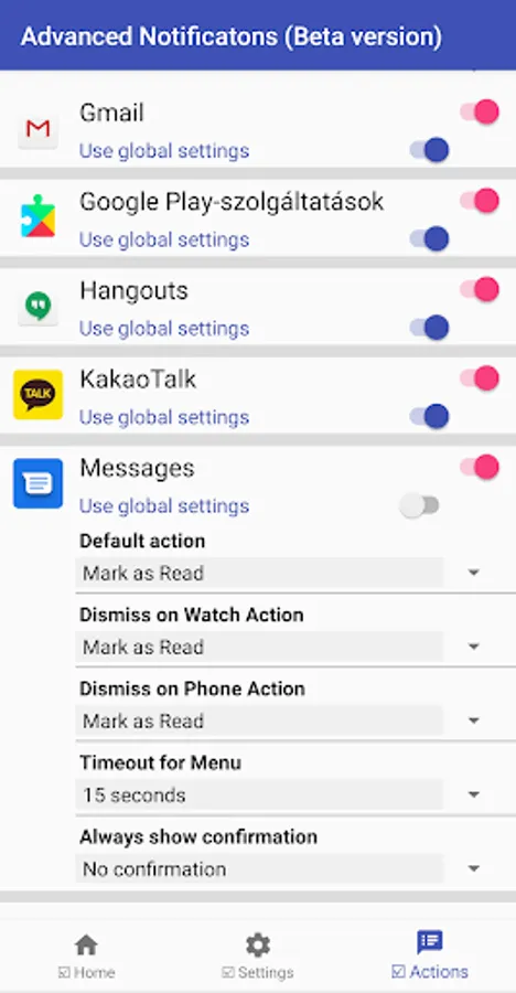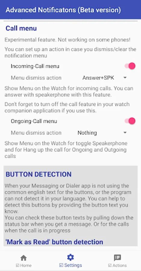 - Set "Mark as Read" when Notification dismissed on watch, or on the Phone