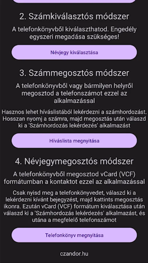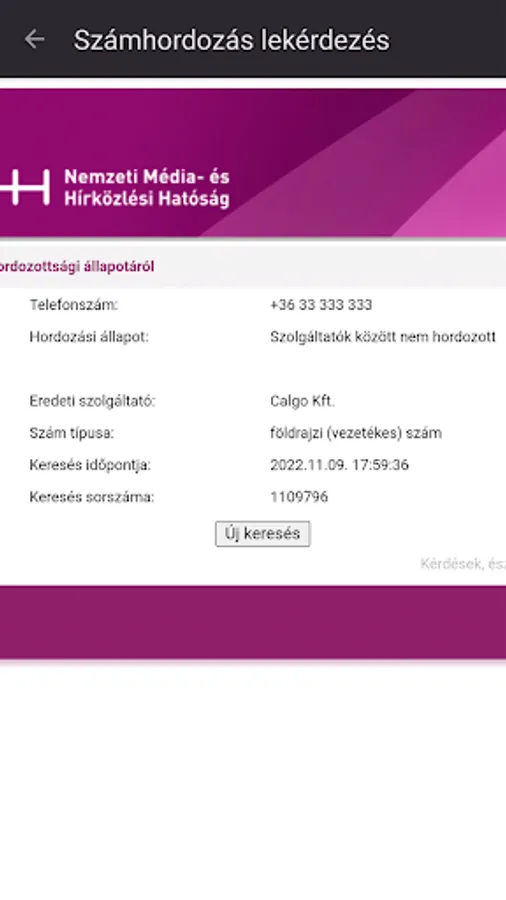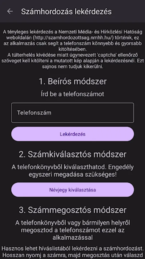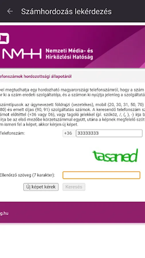 The actual inquiry takes place on the website of the National Media and Communications Authority (http://szamhordozottsag.nmhh.hu/), this application only helps to fill in the phone number easier and faster.