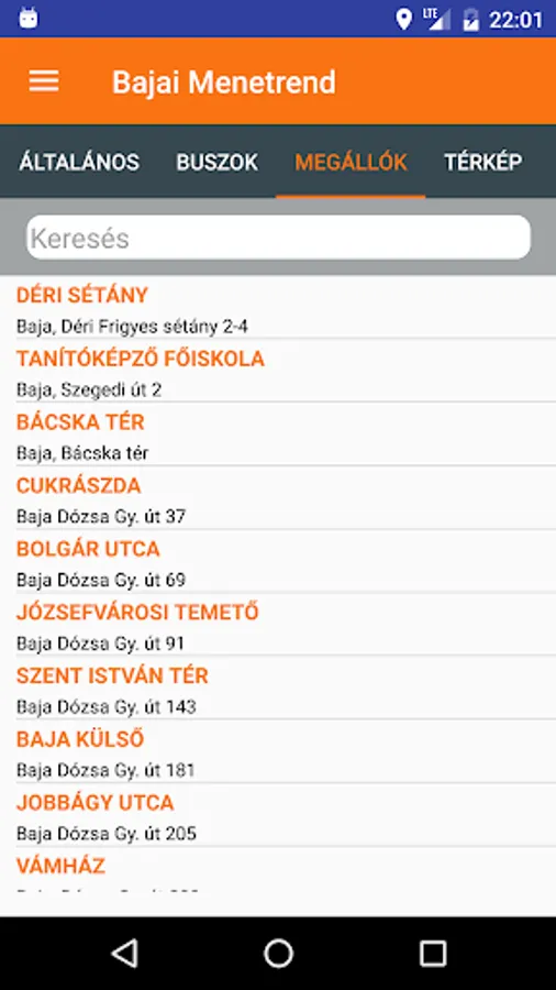 Here it is possible to filter based on flight and the nearby stops and the nearest stop megtudni.A the lower right corner to stop you navigate to the selected option.