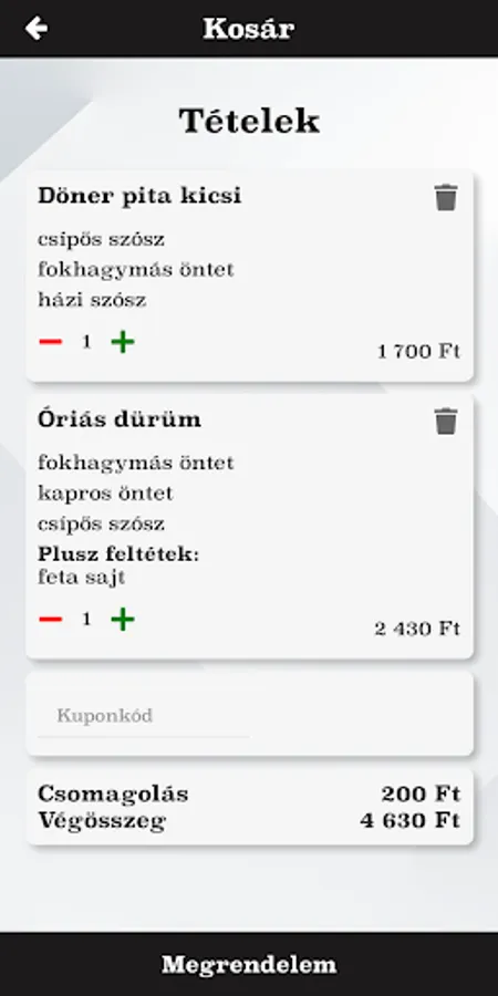 Dönerezz delivers its delicious döner to the city's residents from Miskolc. Our offer includes pitas, döner bowls, döner boxes, as well as giant 30cm dürüm. In addition to meals, you can also order soft drinks. If you like doners, order them online with a few clicks!
