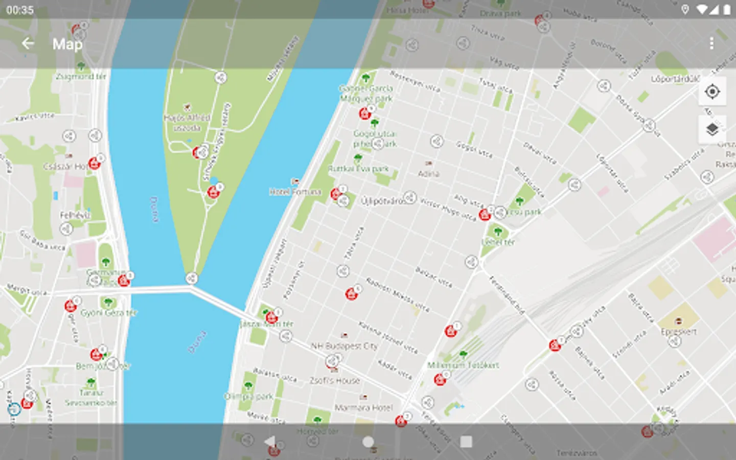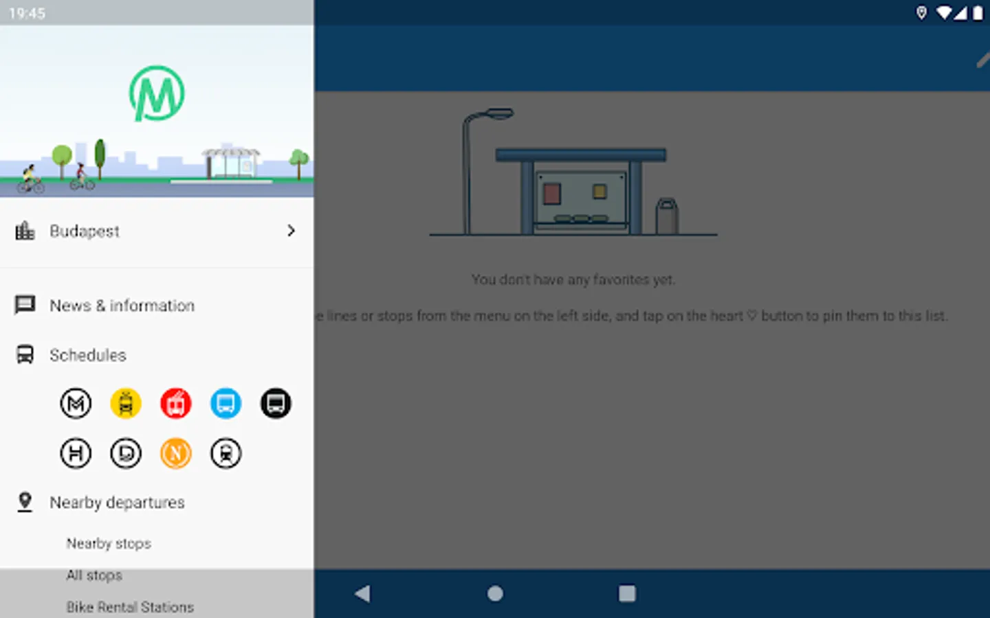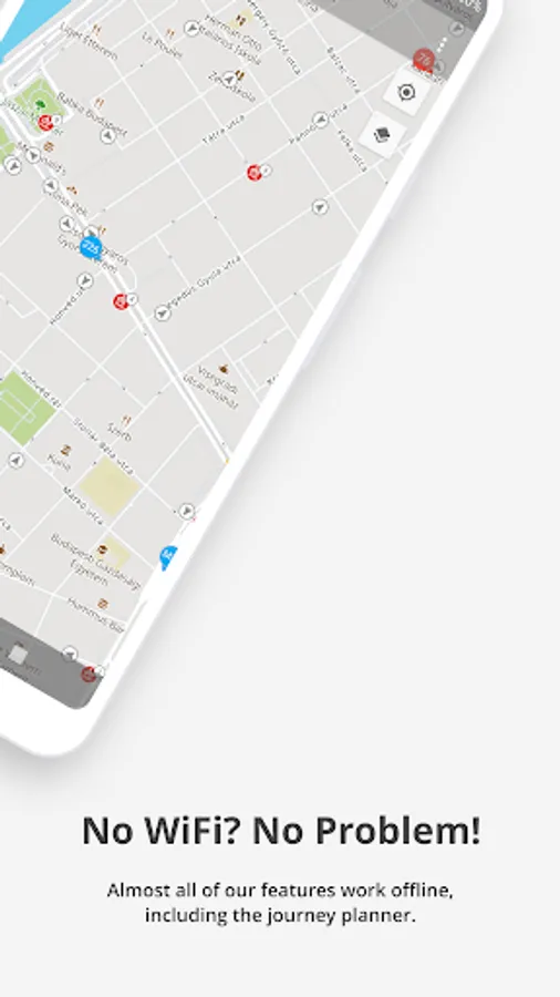 In Budapest, the app also displays real-time information based on BKK FUTÁR, shows suburban train lines operated by MÁV, and contains the location of bike rental stations for Budapest's bike-sharing systems, MOL Bubi and Donkey Republic.