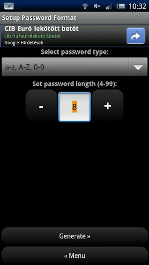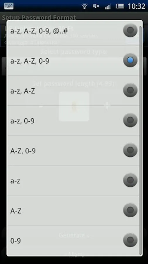 The length of the password is also changeable between 4 and 99, the default is 8.