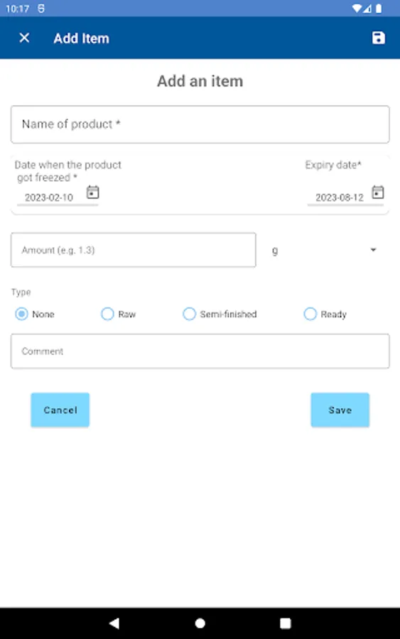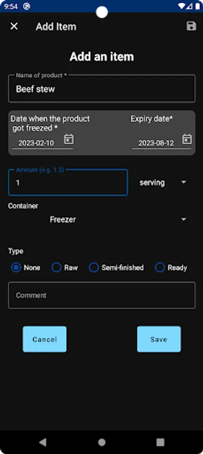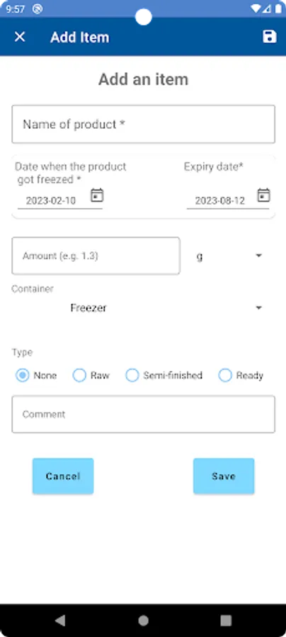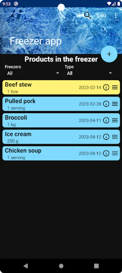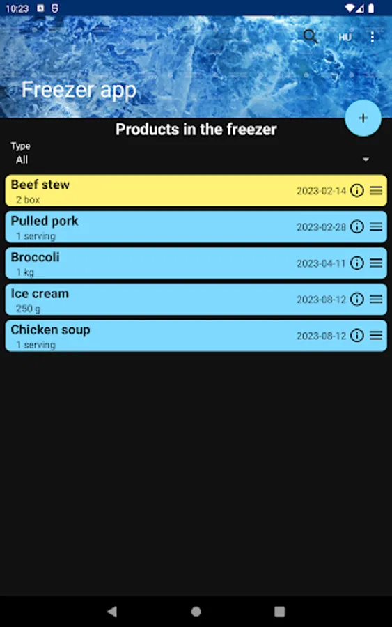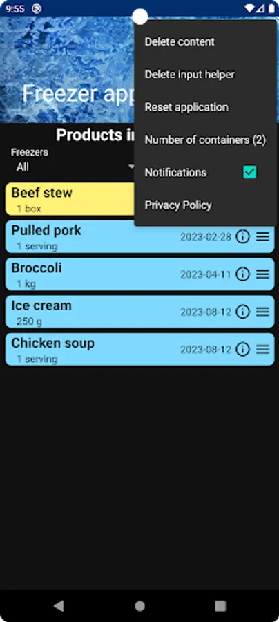 The application supports up to 3 freezers (or any kind of storage) which you can name as you wish and sends notifications before they expiry (you can switch off notifications if you do not wish to recieve any from the app).