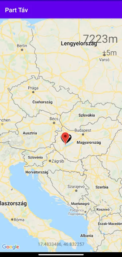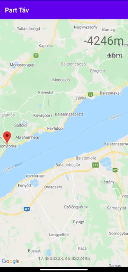 The application automatically finds the nearest shore and then shows the distance to it in meters.