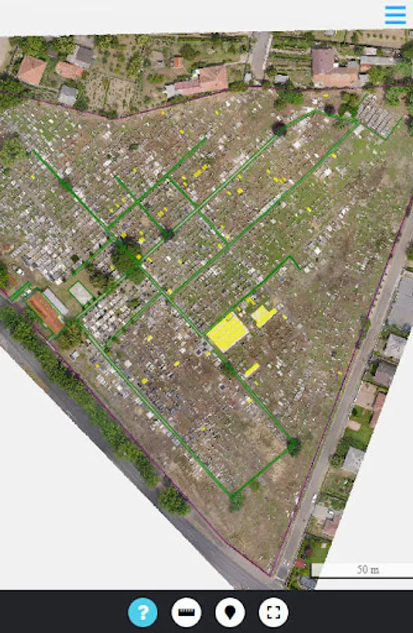 To help with the work to be done in the cemetery, two types of data sheets can be placed: general information ErdaGis web general information and warning ErdaGis web warning. This is done on the "notes" layer, which is displayed when you log in. To do this, enter a characteristic name, preferably the grave number, under "Name" on the data sheet. Here image, word, excel, pdf etc. upload documents, e.g. death certificate, death report, etc. scanned.