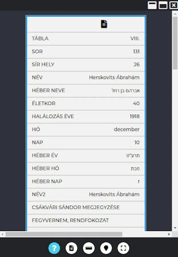 Mobile application of the war graves of the Jewish Cemetery in Debrecen.