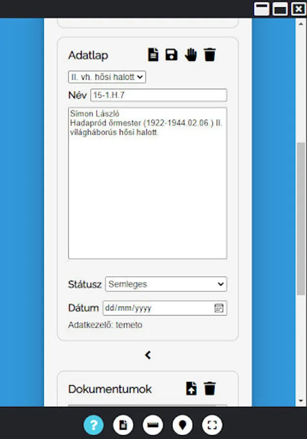 There are two types of datasheets available to assist with cemetery work, general information ErdaGis web general information and warning ErdaGis web warning. This is done on the "notes" layer, which is turned on after login. To do this, you need to give the name "Name" on the datasheet, preferably the tomb number. Get picture, word, excel, pdf etc. upload documents, e.g. death certificate, death report, etc. scanned.