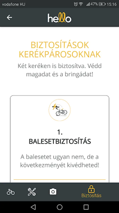 - Forget the cumbersome administration, tie accident liability and property insurance for a few minutes through the application Biker Hello!