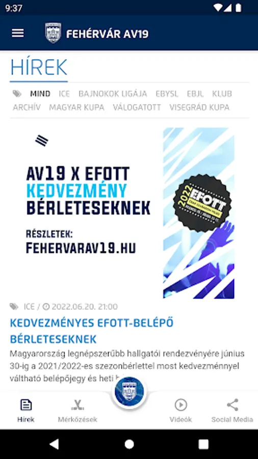 Follow Hydro Fehérvár AV19 in the app. Be the first to know the news, match results, buy your tickets or browse the pictures and videos!