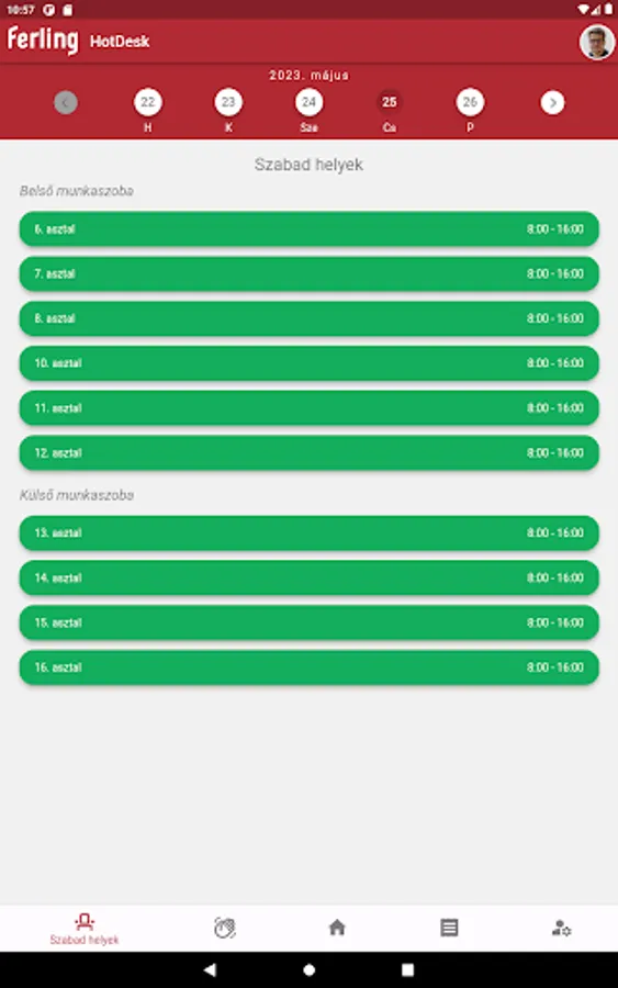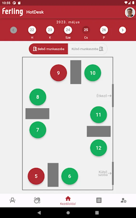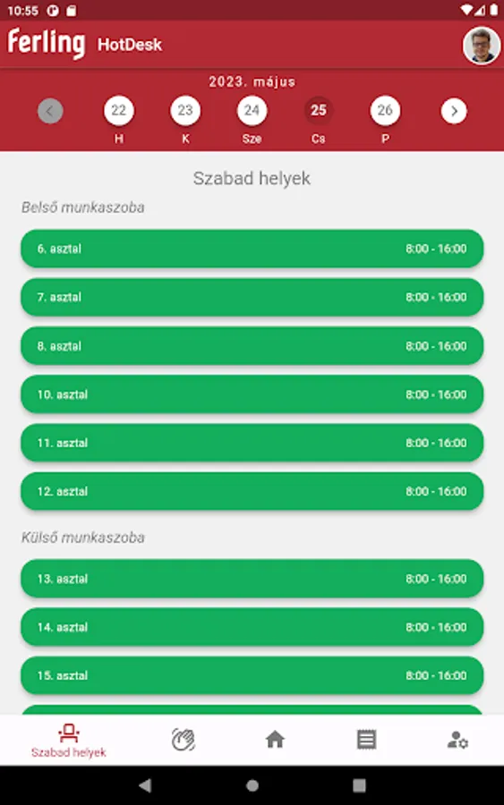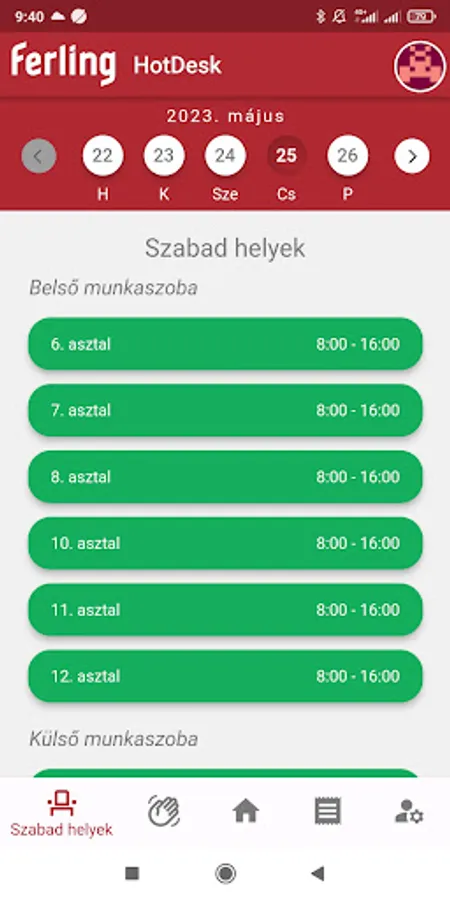 FERLING HotDesk is a placeholder application for the FERLING office in Pécs. The application provides employees with the opportunity to confirm or cancel attendance in the office on their dedicated days, as well as to submit requests for reservations on other days. If a place becomes available, the colleague who submitted the request can be informed about it in a push message.