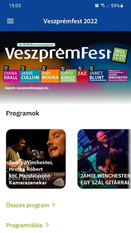 VeszprémFest is a premium music festival launched in 2004. Its mission has remained unchanged from the beginning: to be a rural frontier for world-class music productions from the worlds of jazz, world music, pop or even opera, and - even if only for a day or two - to serve as a home for stars moving around Europe and on the stages of the world. The 18th VeszprémFest will be held on July 11-16, 2022. Diana Krall, Jamie Cullum, Ana Moura, Nicolas Reyes, The Gipsy Kings, ZAZ, James Blunt and Jamie Winchester.