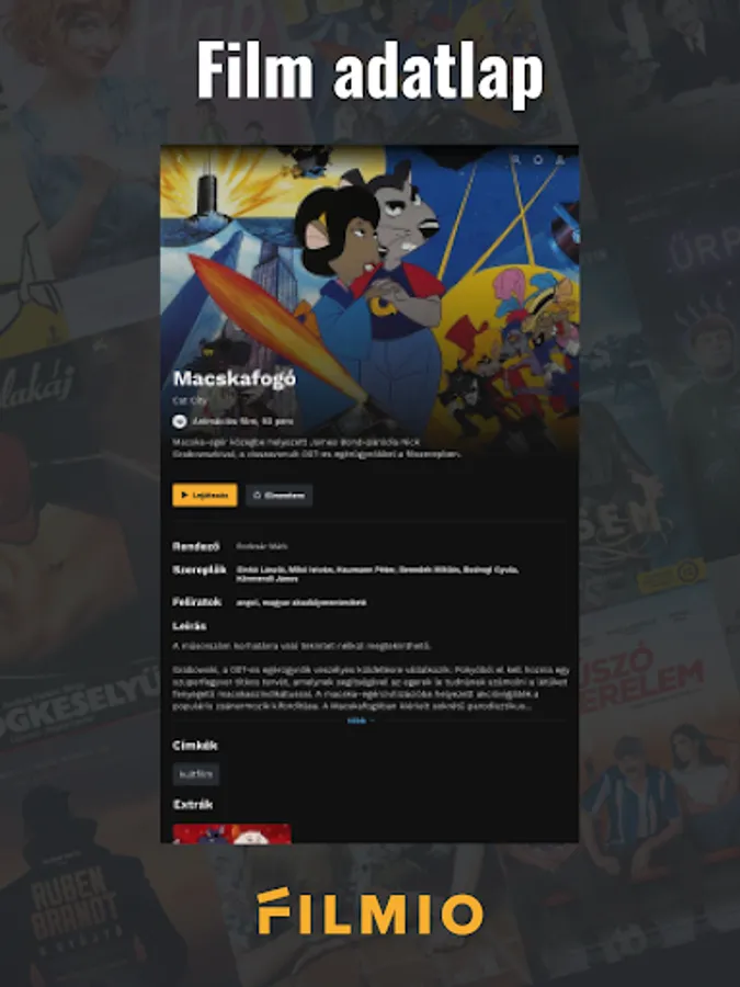 In the FILMIO online video library you will find the eternal classics of Hungarian film art and recent Hungarian successful films. You can choose from all genres, and in addition to movies, you’ll also find interesting additional content. Watch your favorite Hungarian films online, anywhere, anytime, without commercials.