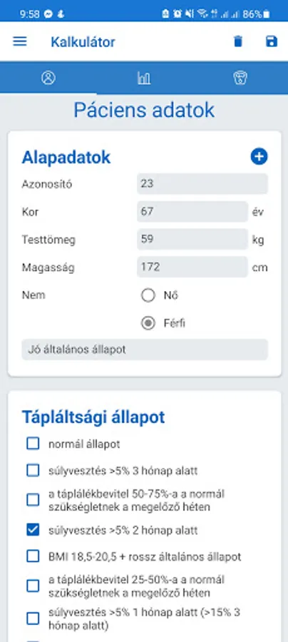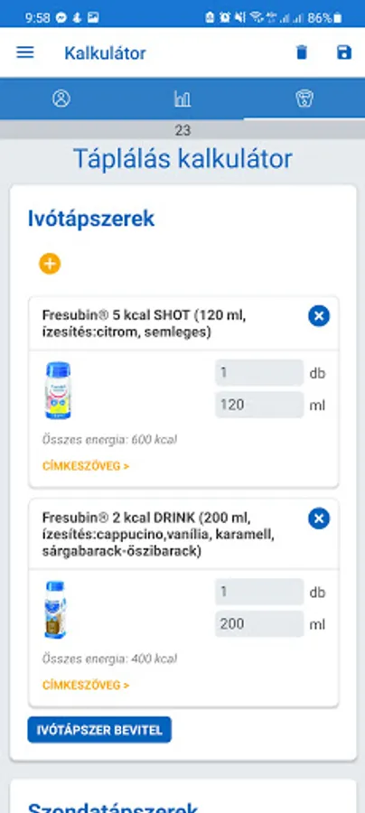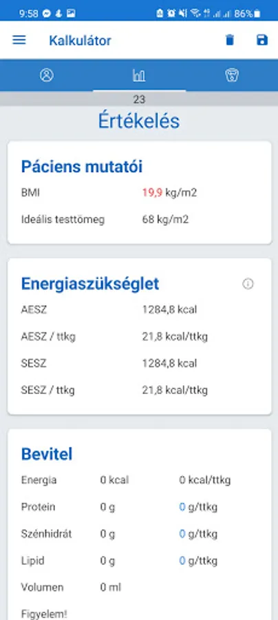 The calculator can be used to calculate the intake of each patient. The nutritional status and basics of the patient can be specified which makes an even more accurate calculation available.