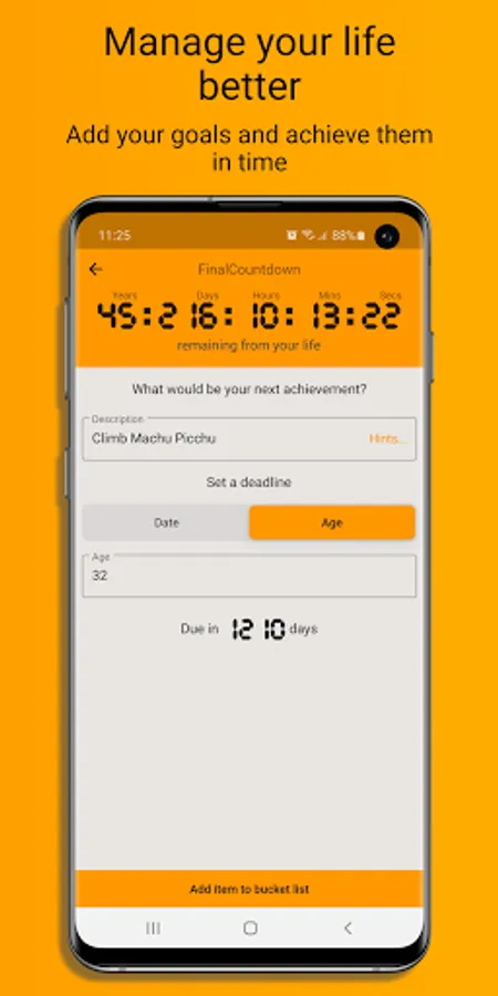 FinalCountdown is a death countdown and bucket list app, so you can live your life to the fullest!