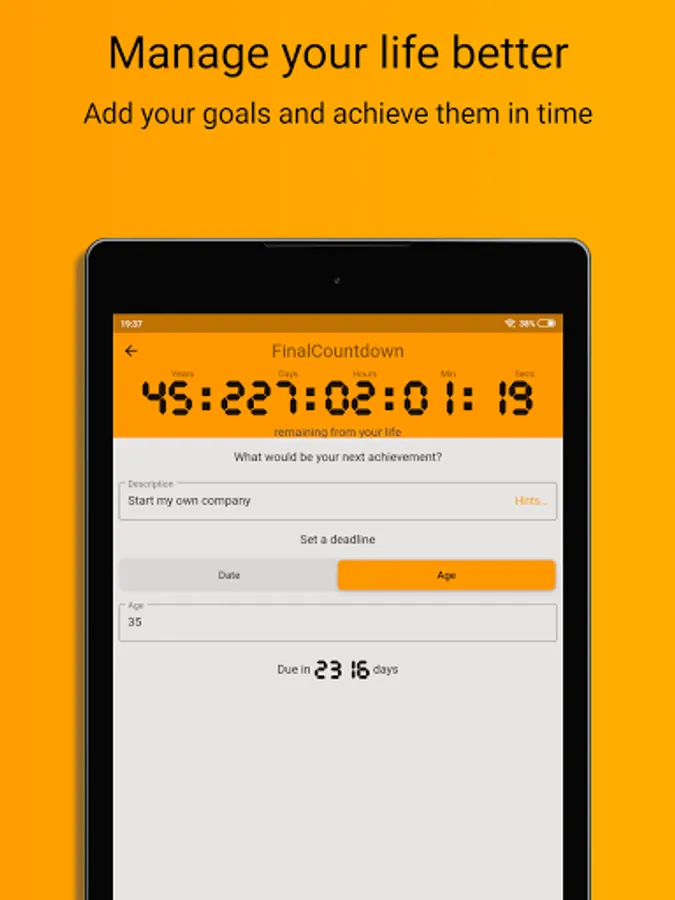 Are you happy and in control of your life? Get the Finalcountdown App, and start to change for the better now!