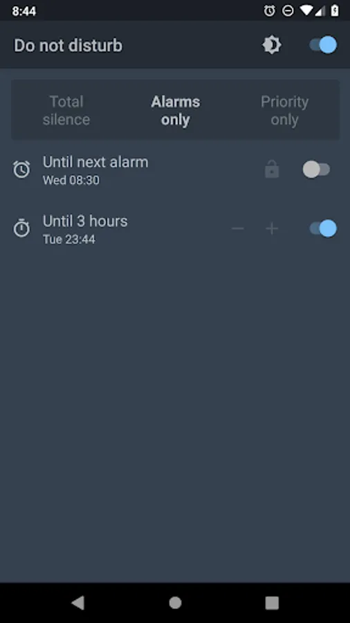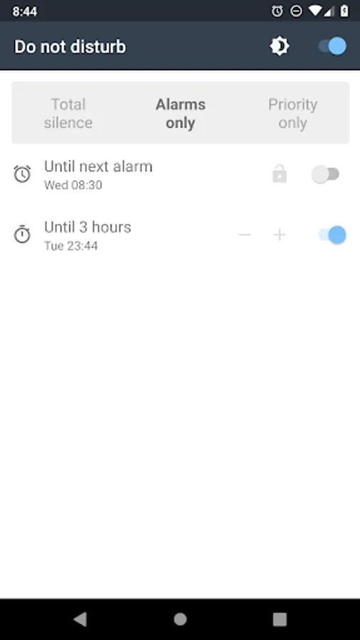 •If the time of the next alarm changes while you are using "Until next alarm" option, this app will use the actual next alarm