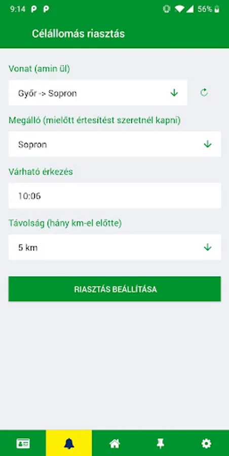 Setting an alarm (when the train reaches a selected station): The function allows you to set an alarm after setting a specific destination. The user can set how many kilometers before the destination to report the application to the destination to help prepare for landing.