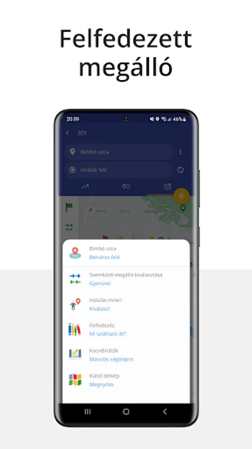 - Positioning: calculation of nearby stops, marking of own position on the map