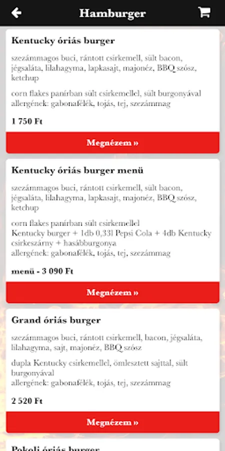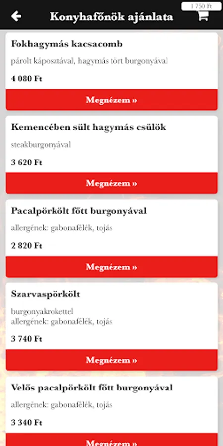 Hell's Kitchen delivers its heavenly food to your home from Bátonyterene. Our offer includes chef's menu, hamburger, hamburger menu, gyros, Kentucky basket, soup, pork dish, poultry dish, vegetarian dish, side dish, hearty dish, pasta, salad, pickles, pancakes, dessert and soft drink. If you're in the mood for a delicious lunch, order online with a few clicks!