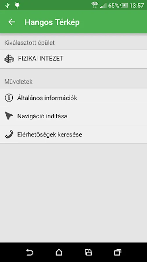 Talking map for blind and visually impaired people, to help navigate inside campus buildings. This is the official accessibility app of the University of Debrecen, Hungary. The app includes up-to-date information and contacts.