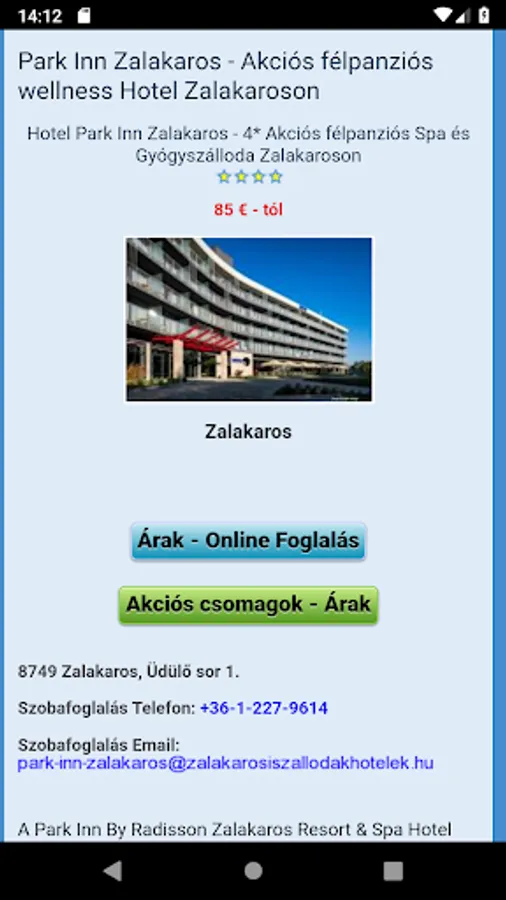 Zalakaros thermal hotels, wellness hotels can be booked at the best price package. You are looking for accommodation in Zalakaros? Download the mobile https://www.zalakarosiszallodakhotelek.hu appját to be all tech gadgets you have all the information about the price and the thermal and wellness packages in Zalakaros. Park Inn Hotel Zalakaros 4 * Hotel Karos Spa Zalakaros 4 * Hotel Freya Zalakaros 3 *, 4 * Hotel Vital Zalakaros. You can find the best hotels in Zalakaros take your choice from the special spa package or wellness packages from Zalakaros.