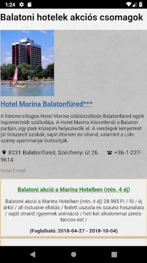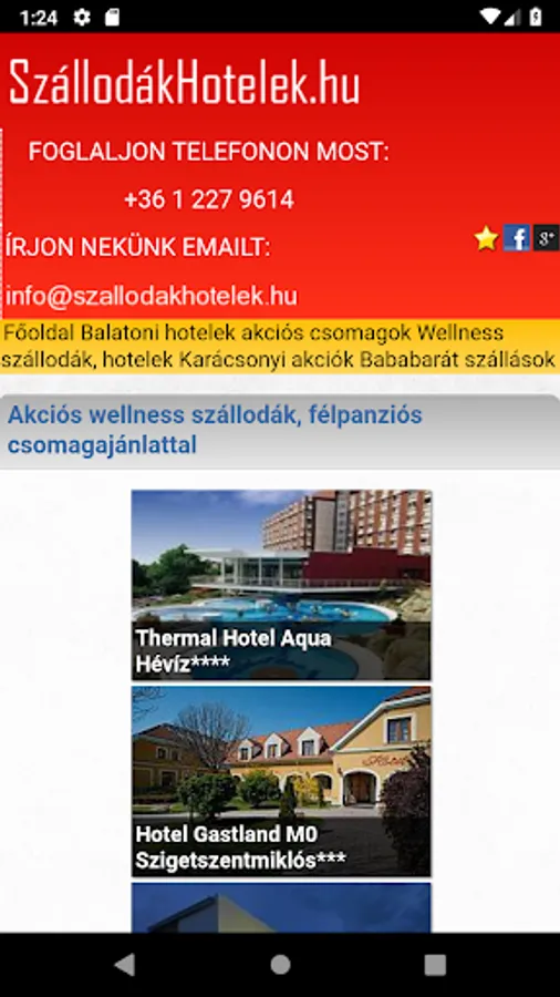Book hotel rooms at special prices at Hotels Hotels site here. You can find the best deals for all spa thermal and wellness hotels at the best prices. Looking for a special wellness hotel in Hungary? Here you can find the offers of hotels at the coupon or last minute prices. Download the http://www.szallodakhotelek.hu telephone app to always book the best hotel room in Hungary. Most of the Spa Thermal hotels provide half board or full board service for a multi-day stay on weekends. The best retired package offers for weekdays and weekends and holidays can be found here. Make New Year's Eve or Christmas special holiday packages for most 4 * hotels. Special wellness hotels, Hotel Azur Siofok, Atlantis Wellness Hotel Hajduszoboszlo, Saliris Spa and Wellness Hotel Egerszalok, Abacus Wellness Hotel Herceghalom, Park Inn Zalakaros, Park Inn Sarvar. Furthermore, spa thermal hotels, Thermal Hotel Visegrád, Dráva Thermal Hotel Harkány, Thermal Hotel Mosonmagyaróvár, Jufa Vulcan Spa Thermal Hotel Celldömölk, Balance Thermal Hotel Lenti, Aqua Spa Thermal Hotel Cserkeszőlő, Hotel Nagyerdő Debrecen, Hotel Flora Eger, Hotel Freya Zalakaros and I could still list the list because better thermal and wellness hotels can be found here in a discounted half-board package. Choose from the best deals.