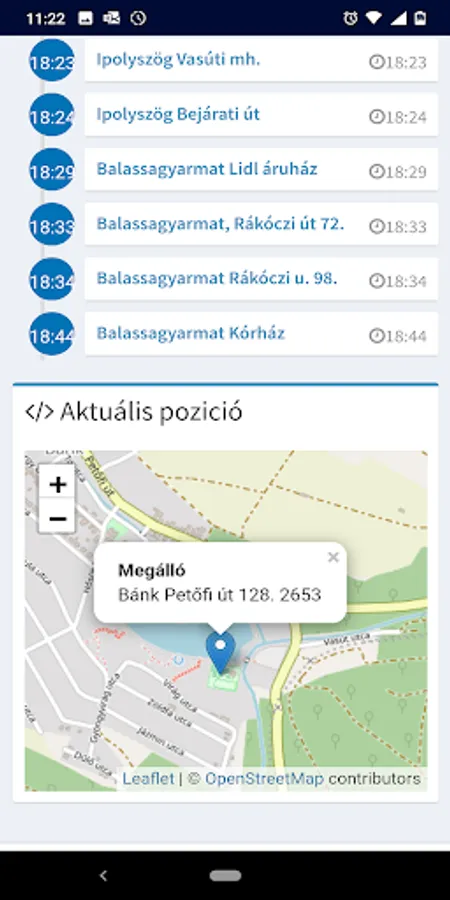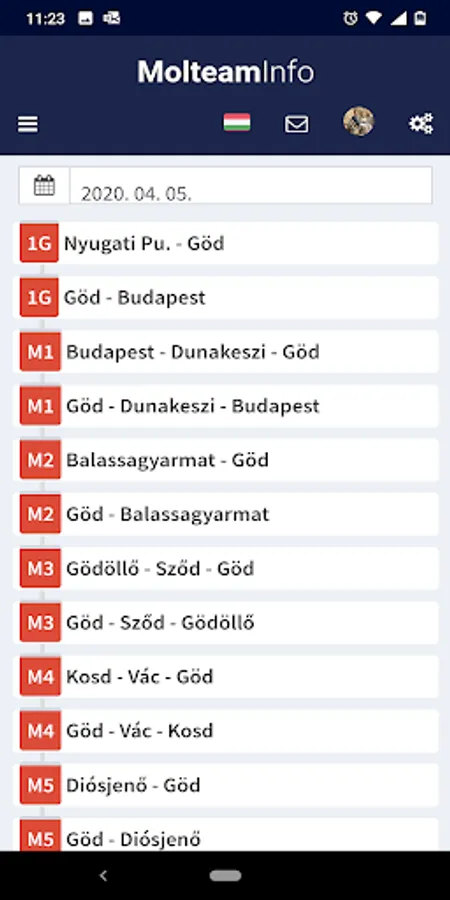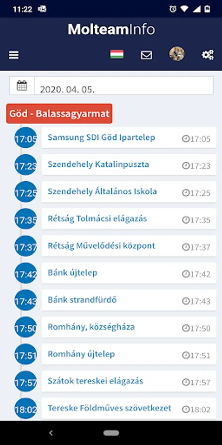The departure and arrival of the bus services operated by Molteam Kft, the locations and times of the stops, as well as GPS-based tracking of the current position of the bus, information on possible delays (in a push message).